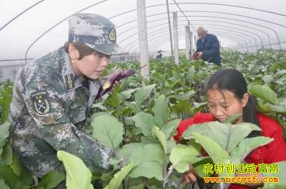 4月1日,在四川荣县鼎新镇西堰村连片的钢架大棚蔬菜地里,一位身着迷彩服的中年妇女正手把手地向一群民兵传授早春茄子的管理技术。她,就是该镇西堰村民兵连长曹连君,也是这片52.3亩蔬菜流转地的主人。