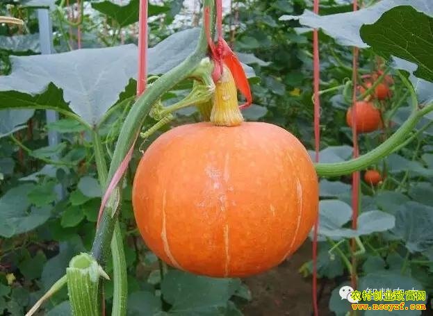 【垫瓜】:当南瓜生长到20至30公斤时,要用草绳或柳条编成圆圈垫瓜。每个瓜垫2至3个(石头也可),使之离地面3至5厘米,以防烂瓜,并使瓜着色一致。