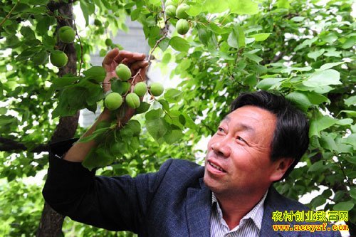 3月24日,河南巩义一名农民在展示已经挂果的反季节杏。